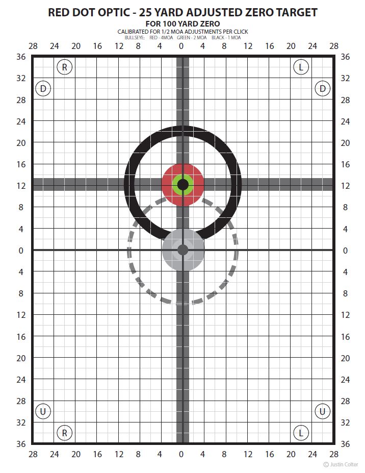 Point of impact at various distances for 25, 50, and 100 yard zeros (5.56 M193, 3,000 fps, 16" barrel).